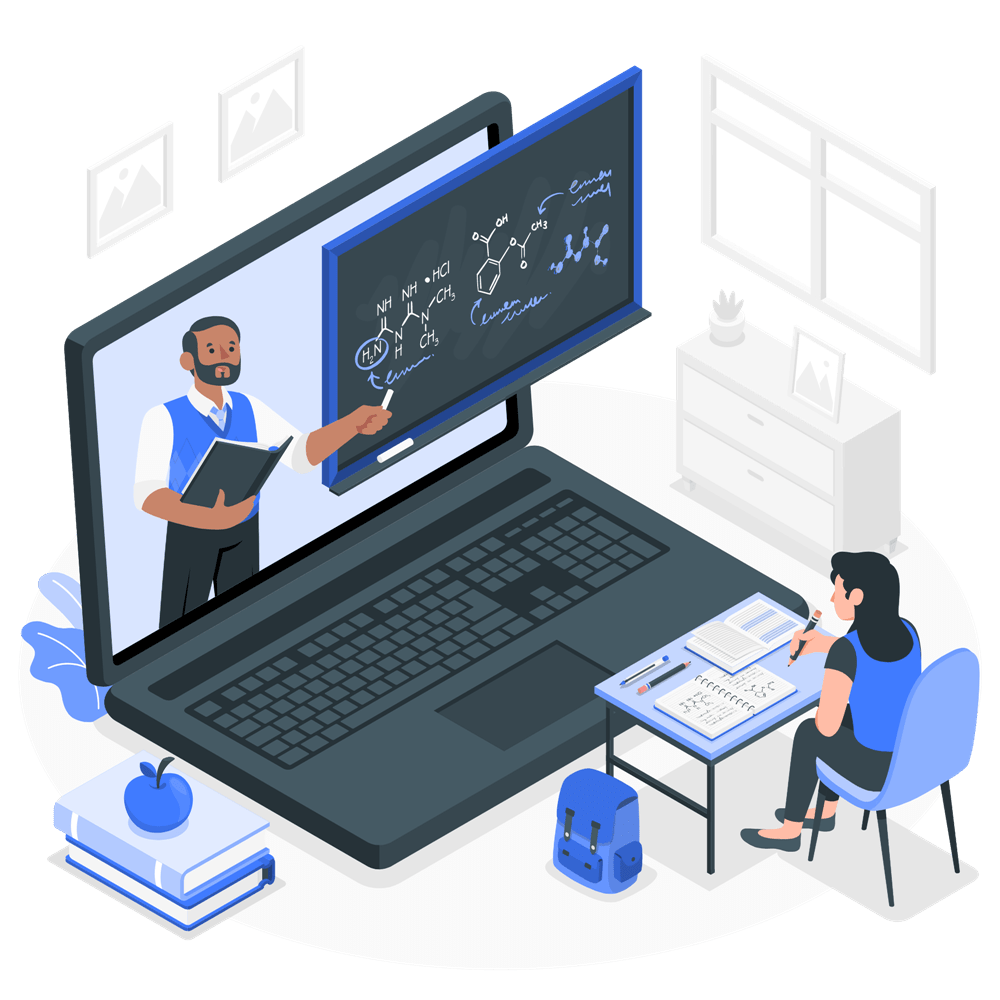 Terdapat kelas virtual sehingga anda dapat menjelaskan sesuatu melalui obrolan langsung atau panggilan konferensi kepada siswa Anda.